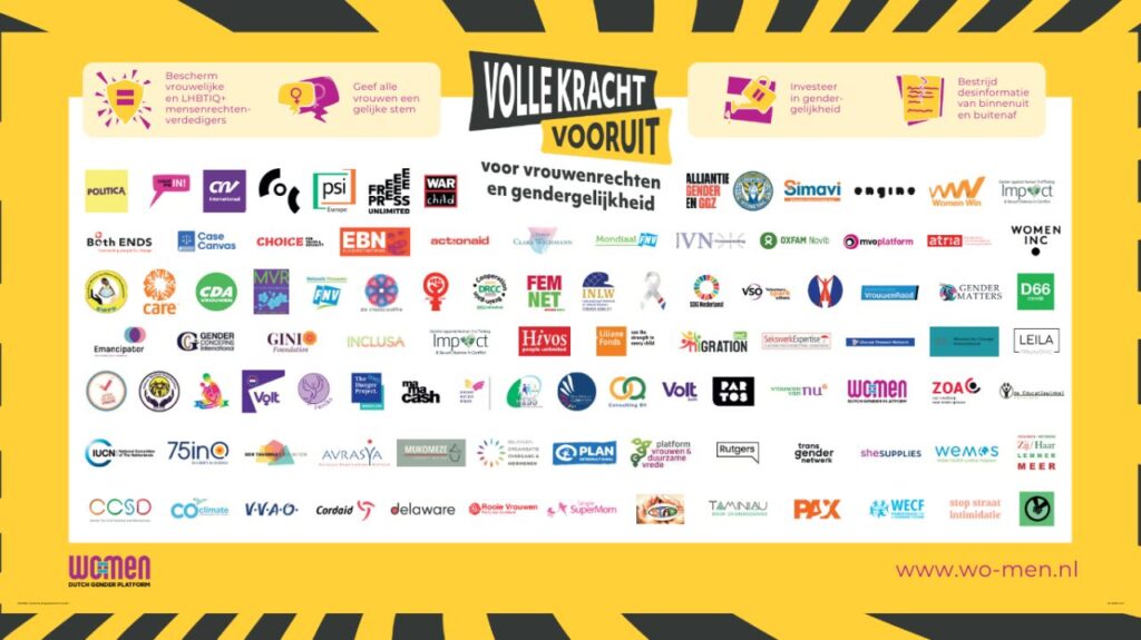 Bijna 100 maatschappelijke organisaties, bedrijven en politieke vrouwennetwerken riepen vandaag Tweede Kamerleden op steviger op te komen voor vrouwenrechten en gendergelijkheid. Zij maken zich grote zorgen over de wereldwijde afbraak van verworven rechten, ook in Nederland. Vrouwen in de politiek, media en wetenschap worden vaker de mond gesnoerd. Geweld tegen vrouwen en LHBTQI+ personen neemt toe. De organisaties vragen om de veiligheid te garanderen van de mensen die zich inzetten voor gelijke rechten. Ze willen gelijke representatie van vrouwen in de politiek, financiële steun voor vrouwenrechtenorganisaties, en dat valse en misleidende informatie over vrouwenrechten en gendergelijkheid stopt.